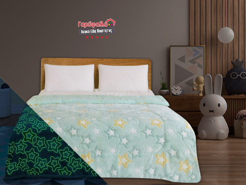 Χαρίστε χαμόγελα και ζεστασιά στα παιδιά με το φωσφοριζέ κουβερτοπάπλωμα Stars. Η φωσφορίζουσα συλλογή περιλαμβάνει κουβέρτες, κουβερτοπαπλώματα και χαλιά.