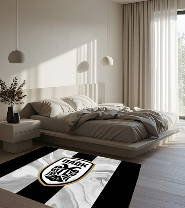 Νέα σειρά χαλιά που απεικονίζουν το χαρακτηριστικό ασπρόμαυρο σχέδιο και το έμβλημα του συλλόγου, συμπεριλαμβανόμενου του δικέφαλου Αετού και της χρονολογίας 1926. Είναι διαθέσιμο σε δύο μεγέθη, όπως 120x160cm και 160x220cm. Αντιολισθητικά χάρη στη σύνθεση του πίσω μέρος του προϊόντος, για τη μέγιστη ασφάλεια του παιδιού σας.