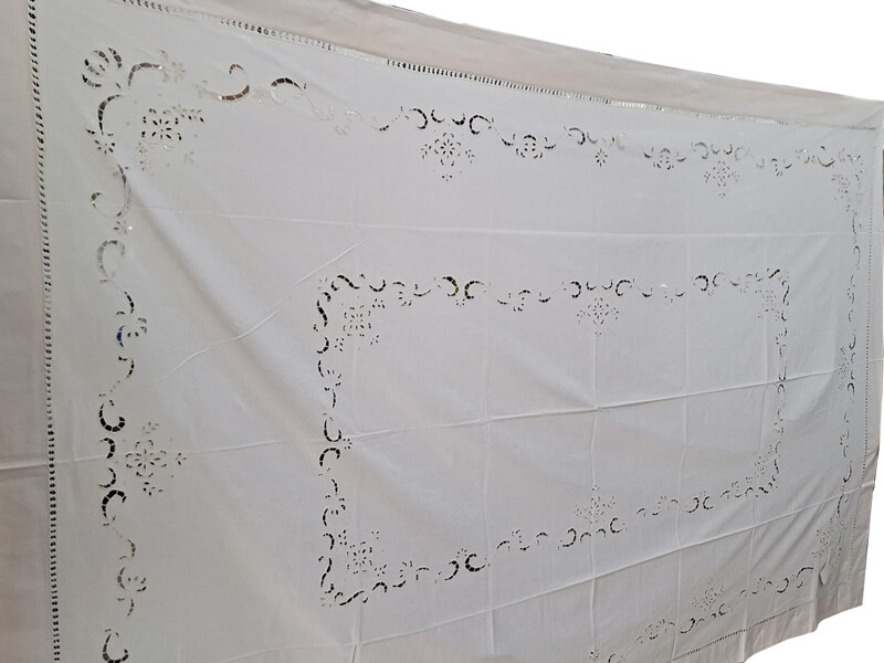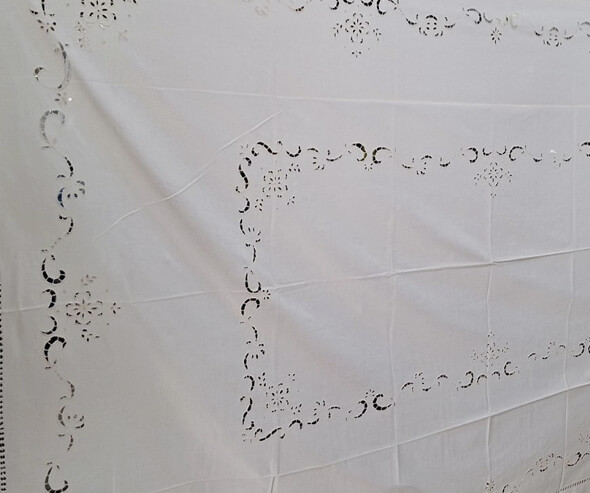 Χειροποίητο κοφτό τραπεζομάντηλο κατασκευασμένο με τον παραδοσιακό τρόπο, με κοφτό κέντημα και πλεκτά μοτίφ.