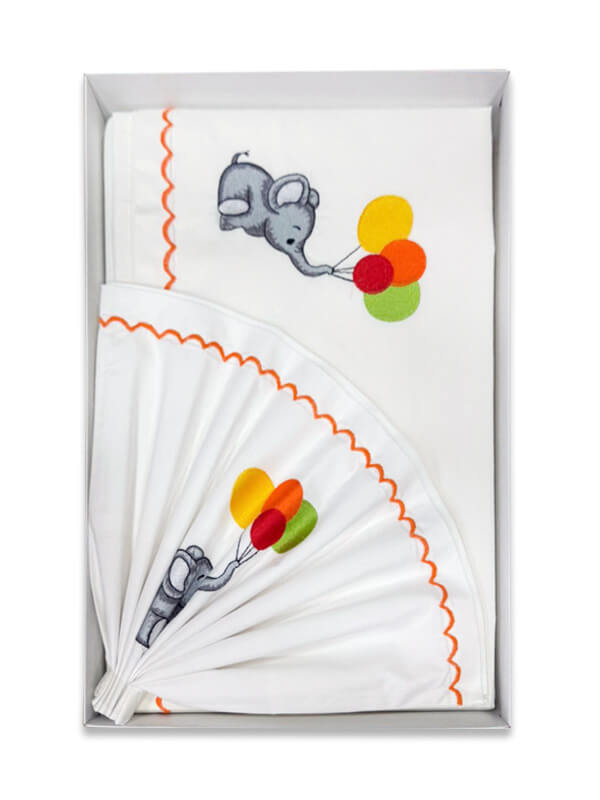 Πανέμορφο σετ βρεφικά σεντόνια κούνιας 100% βαμβακερά με κέντημα και υπέροχo σχέδιo χαρούμενο ελεφαντάκι σε γκρι απόχρωση. Σετ 3 τεμαχίων σεντόνια κούνιας (κατωσέντονο, πανωσέντονο και μαξιλαροθήκη), κατασκευασμένα με ύφασμα από 100% βαμβακερά νήματα πυκνότητας 150 κλωστών (150 TC), ανθεκτικά στην καθημερινή χρήση και στις συχνές πλύσεις, υποαλλεργικά, μαλακά στην αφή και με απαλή αίσθηση για το δέρμα του μωρού. Ενδείκνυται Πλύσιμο στους 40°C. Διατίθενται σε συσκευασία δώρου.