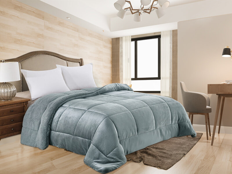 Κουβερτοπάπλωμα Υπέρδιπλό Βελουτέ Γκρι Square Με Sherpa Γαρύφαλλο 240x260